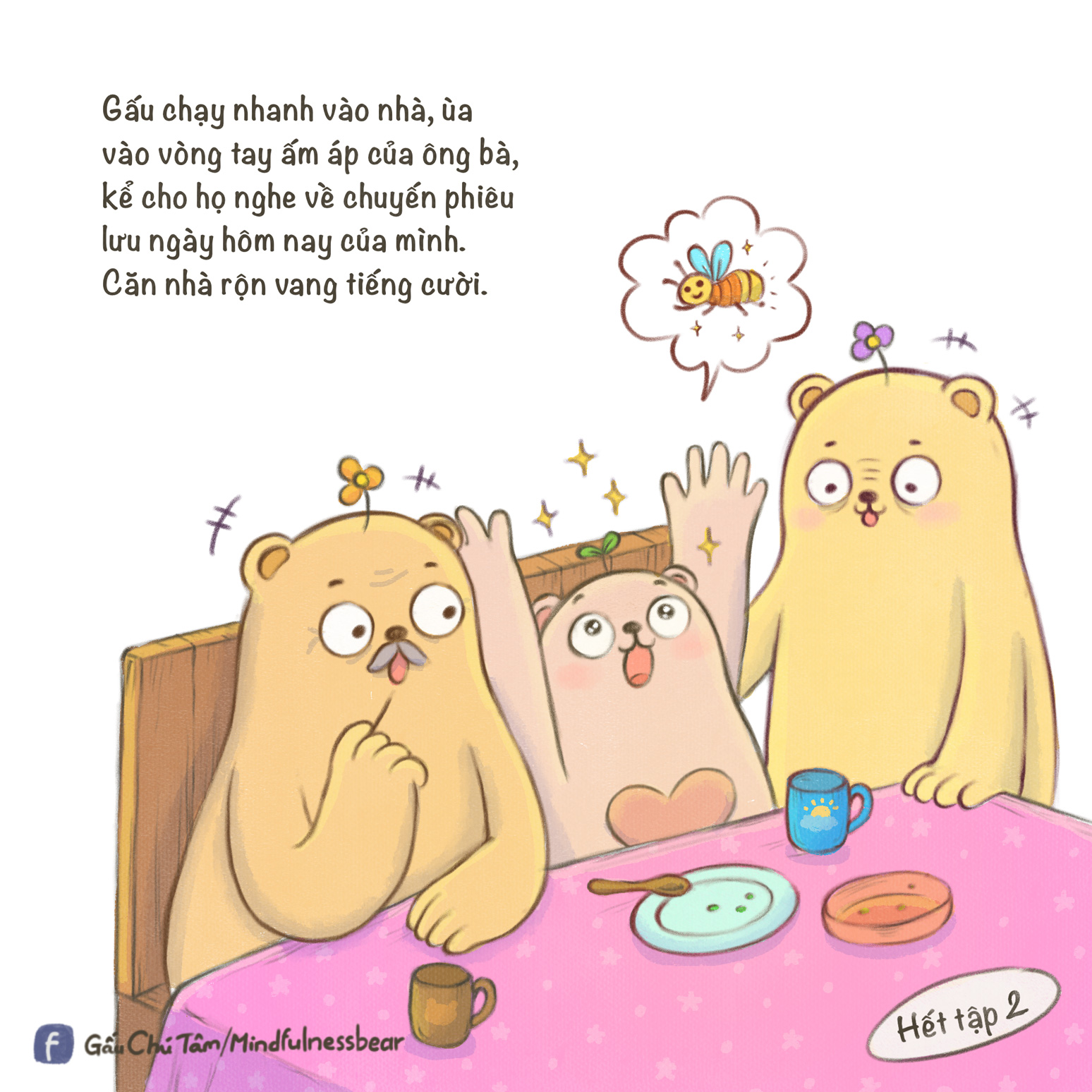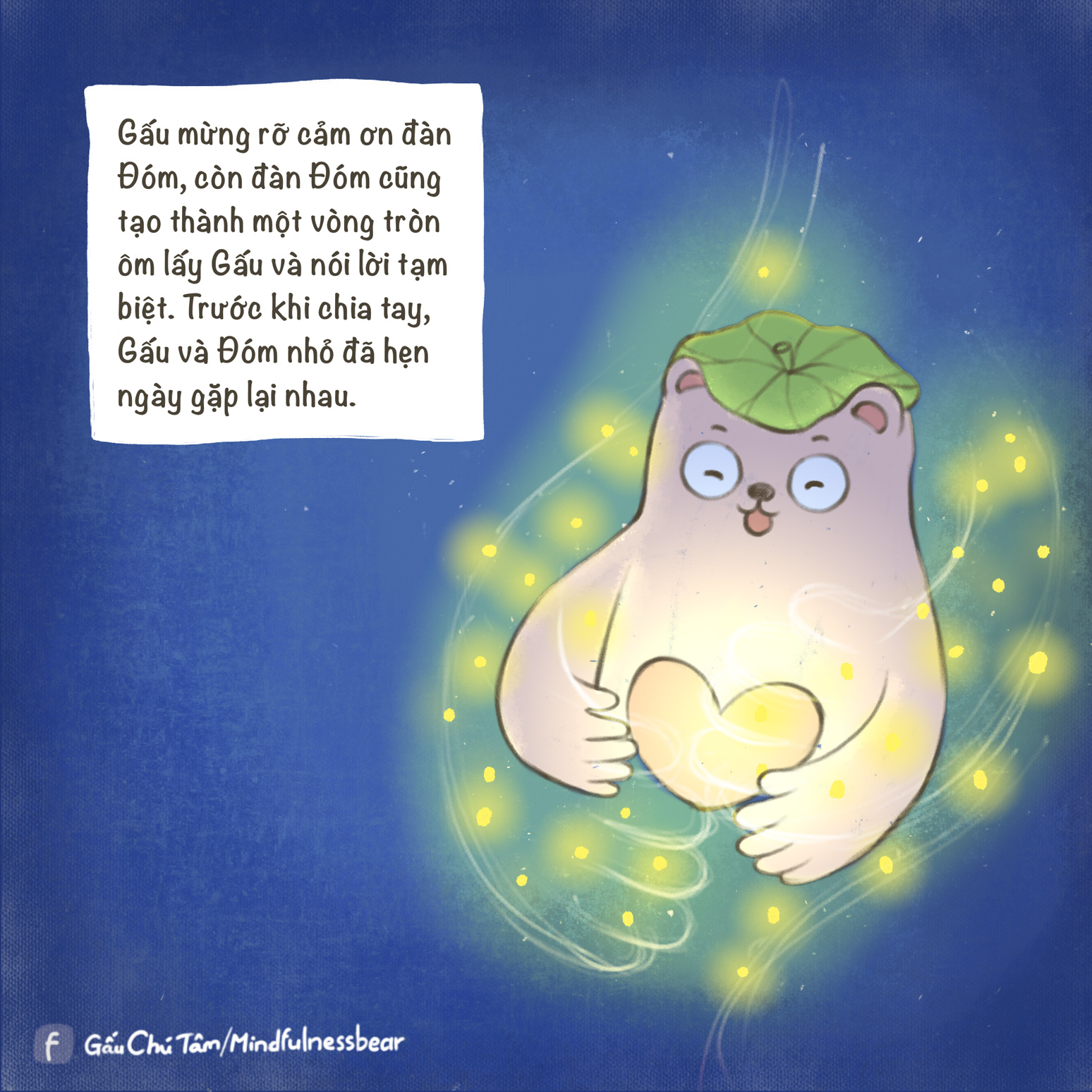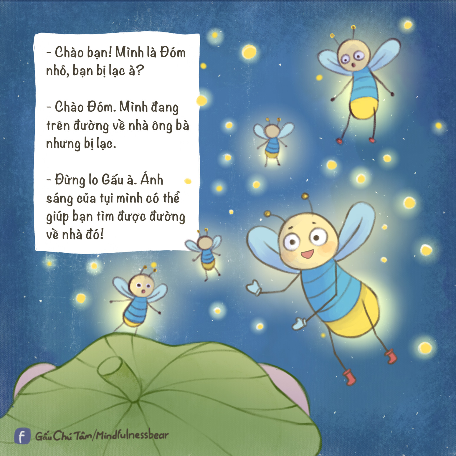 Ba mẹ và bé cùng thảo luận. Sau khi đưa Gấu về nhà, đàn đom đóm đã làm gì để tạm biệt Gấu? Em và ba mẹ